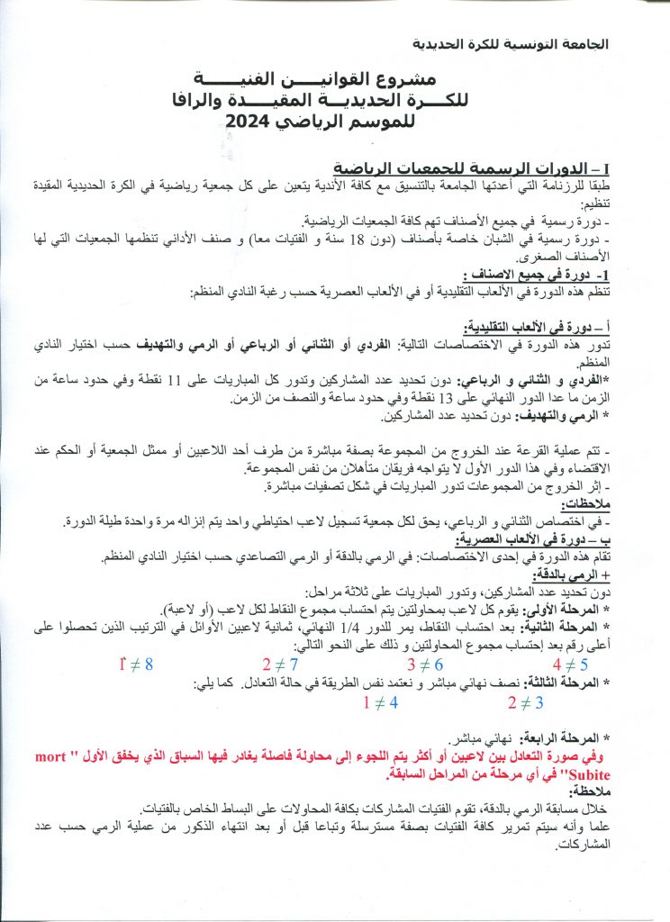 • الرزنامة والقوانين الفنية للكرة الحديدية المقيدة لسنة 2025